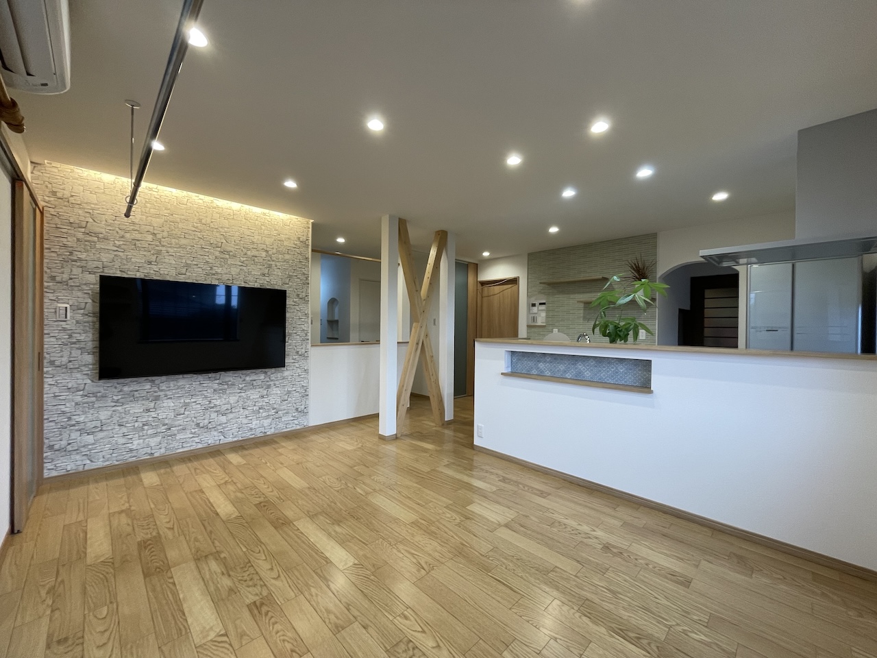 一方で、テレビの後ろには間接照明が入っています。これは、工事が始まってから欲しいなと思い「これから何とか入れられませんか」と相談して、取り付けてもらいました。現場で臨機応変に変更ができたり、出てきた希望にどう対応できるか素早く考えてくださったりも、本当にありがたかったです。おかげで、映画を見る時などは間接照明だけにして、とってもいい雰囲気で楽しめていますよ。